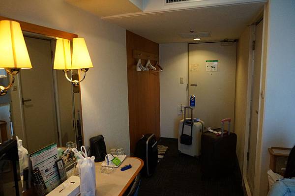 大阪的酒店似乎感覺也不大,房門打開放眼看過去大概是一兩坪的大小