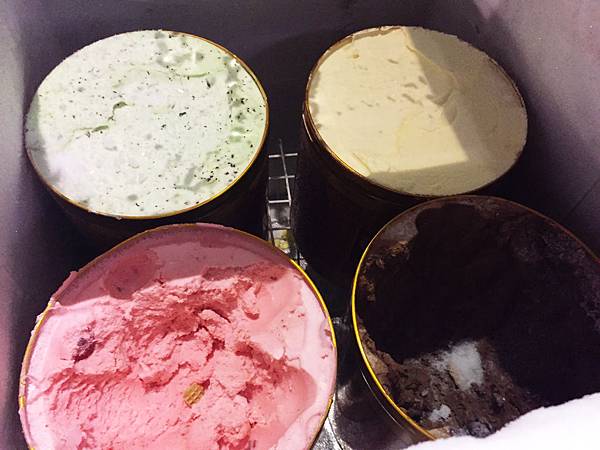 共有四種口味 :薄荷巧克力、草莓、香草、巧克力。
