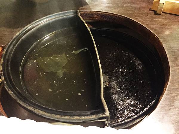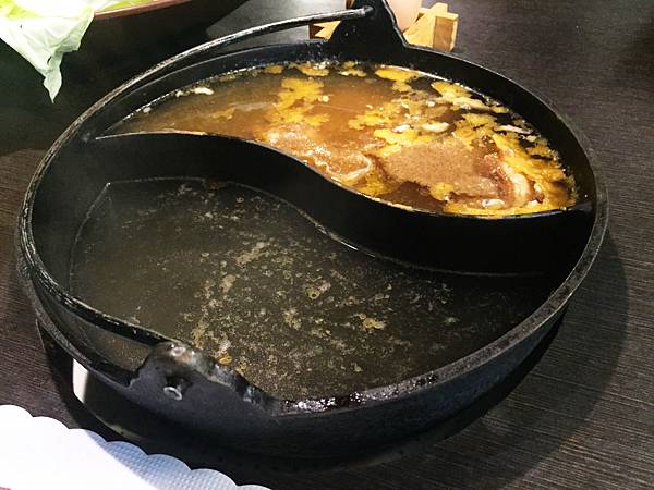 本次點選的的清湯和羊肉爐的兩種鍋底,是鴛鴦鍋的吃法切割了各一半