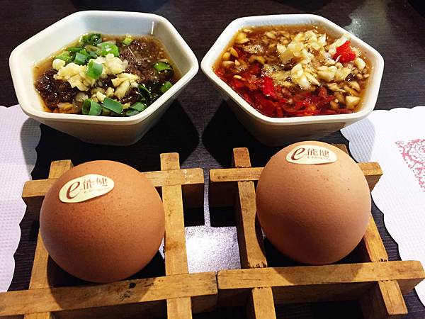 多菲專用醬料和小梗專用醬料已調製完畢 附上雞蛋兩顆