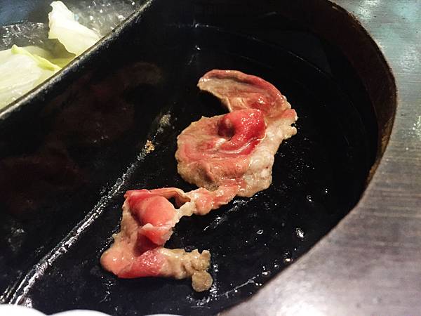 小小的烤盤上確實可以烤火鍋肉片,不過由於烤盤較小,大概1~2片就足以滿盤~