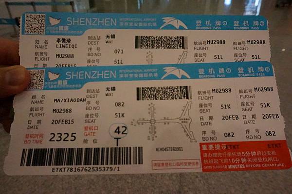 本次的航線是 ~~深圳寶安機場-->無錫蘇南碩機場