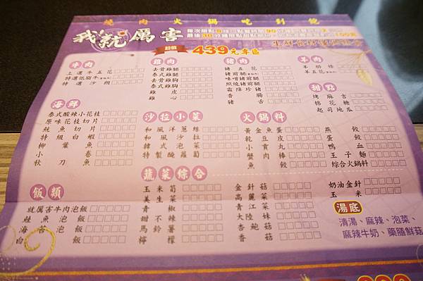 點餐方式為自由點選自己喜歡吃的食材,在菜單上劃記,此為439元專區