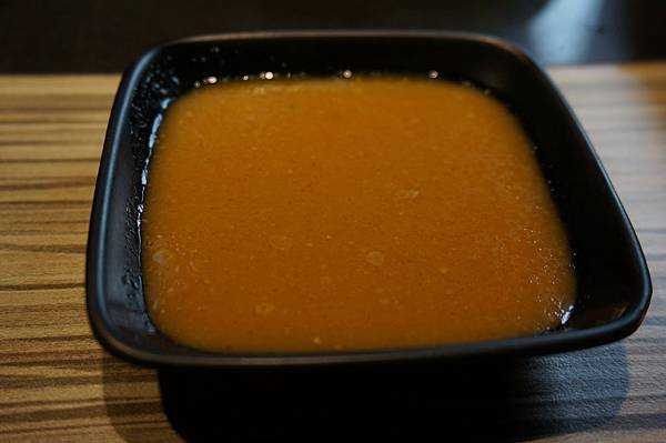 肉片上帶有亮面的油酯,搭配【味增醬】吃起來相當夠味。