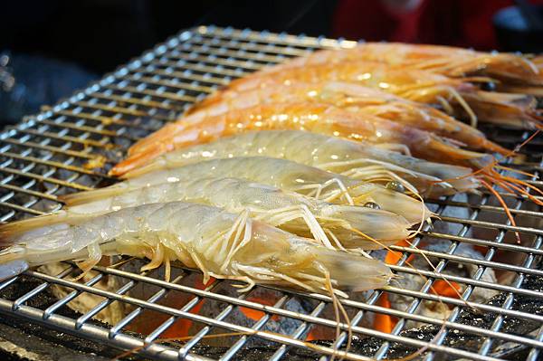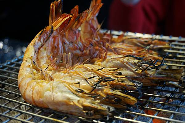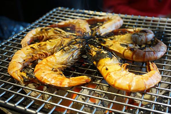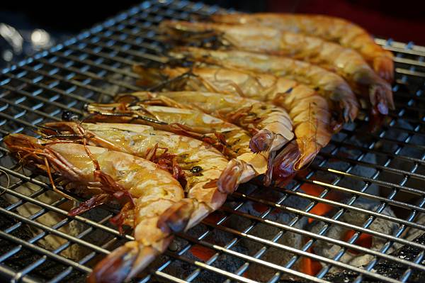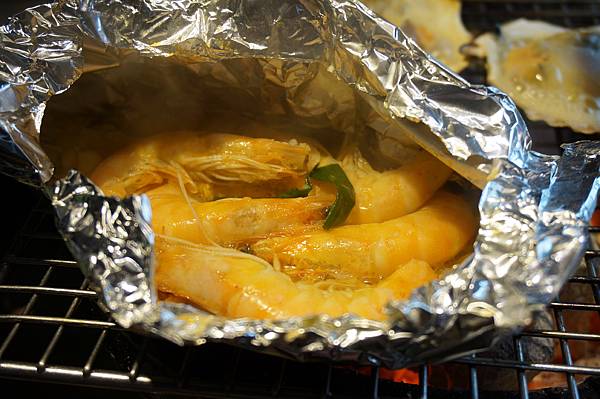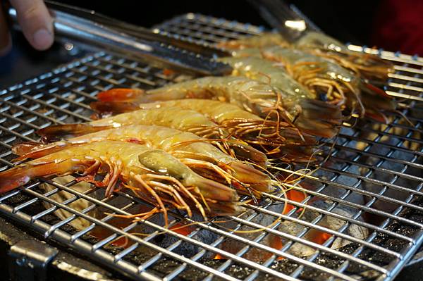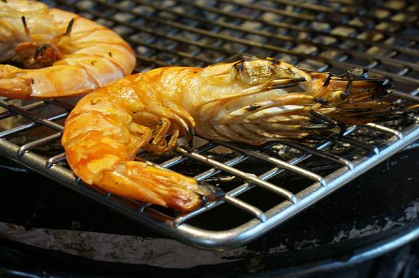 蝦子很容易熟,一放上烤網沒兩下,蝦身就已經變了顏色