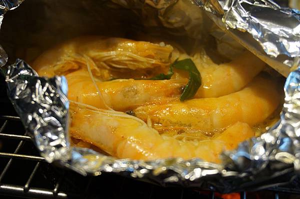 使用鋁箔紙包覆蝦子去烤才能吸收蒜茸鮮味
