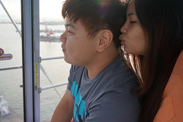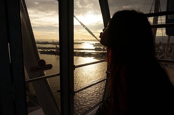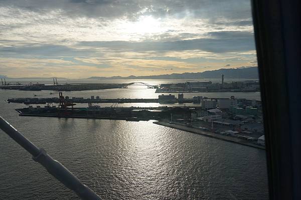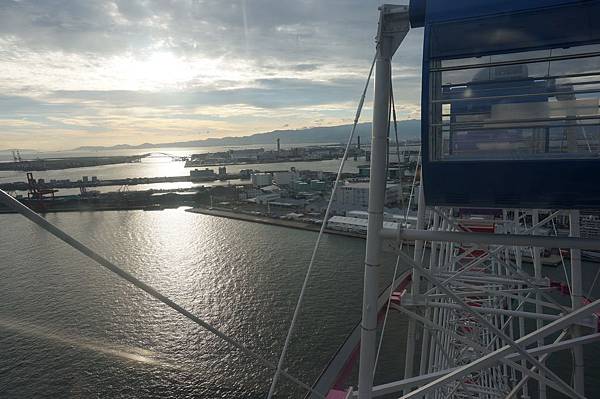 乘坐摩天輪到高處,可以見到剛好是接近傍晚的大阪灣,景色怡人。