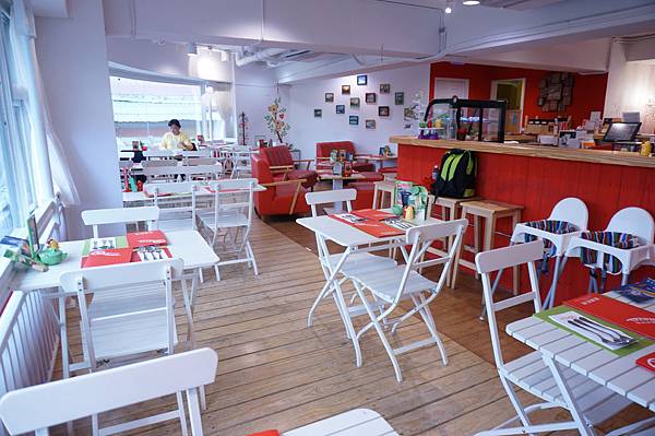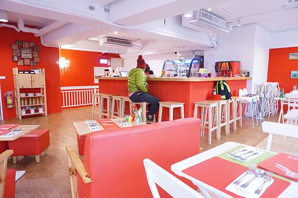 店內的用色都是以 紅&白 作為搭配,讓整個空間感充滿熱情和活力。