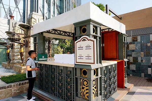 新濠影匯的室外游泳池在樓層三樓的位置,需先搭乘電梯到三樓後轉往接待處確認身分,