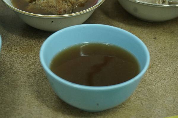 最後每個人都會贈送一小碗的肉骨湯,真的是很小一碗,大概一兩口吧,可惜不夠燙呀~