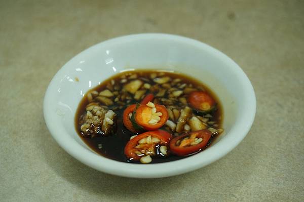 醬料的部分會放在外面的桌檯,可以自己去拿,搭配一點點蒜頭,味道更好。