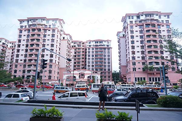 Marina Court 大廈是淡粉色的外觀,由大概五六棟的大樓所組成