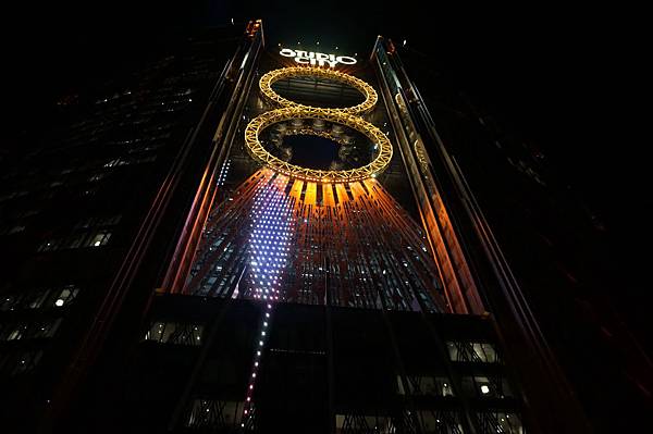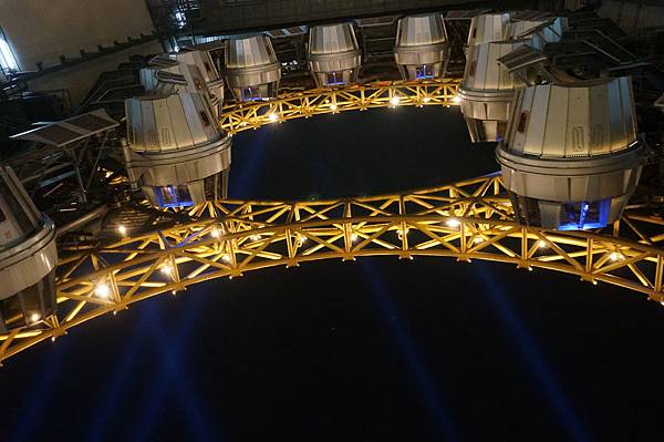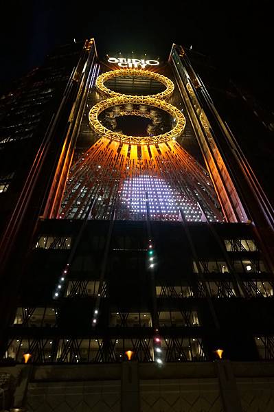 遠遠的看過去是一個很華麗的設計,加上四周大樓的設計和燈光的點綴別於以往傳統大圓圈式,非常科幻炫麗。