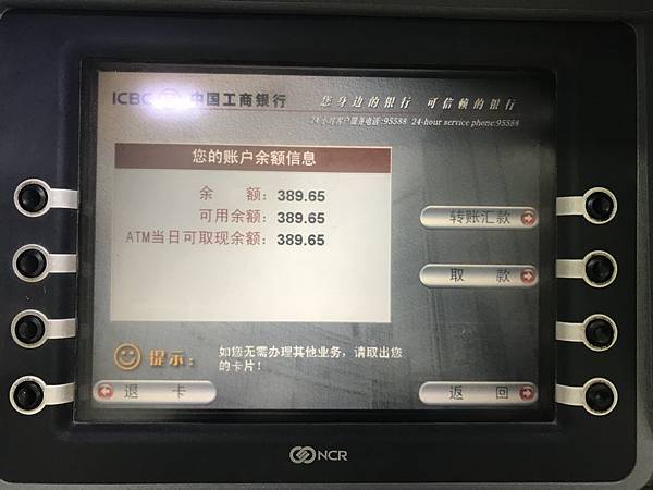 簡單的梳洗之後,就出門啦,出發前先去帳戶看看人民幣還夠不夠用好了 ![]()