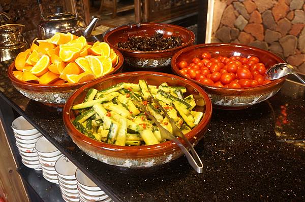 涼拌菜有小黃瓜、和蒜蓉木耳,水果則是柳丁和蕃茄。