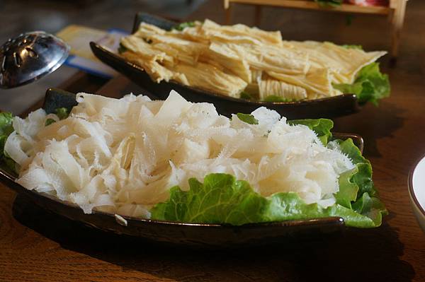 首先,先上了一份牛百葉和豆皮,牛百葉是多菲喜歡的呀~