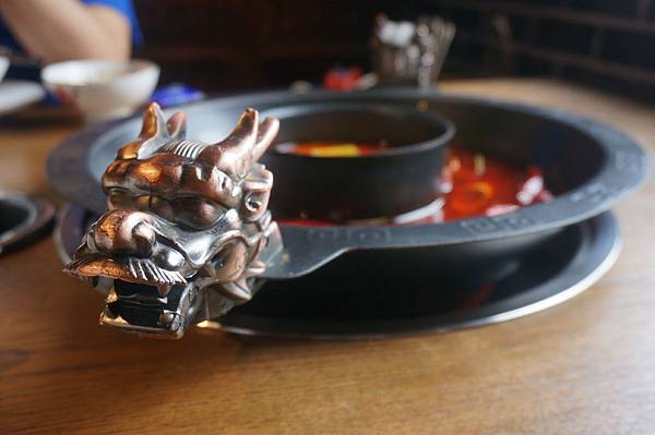 咦 !鍋子的設計也相當有意思,有個龍頭的設計,讓整個火鍋就霸氣十足