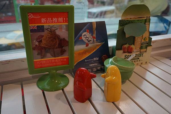 餐桌上擺放著一些小餐牌和調味料的小瓶罐,相當可愛!!