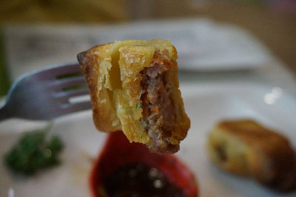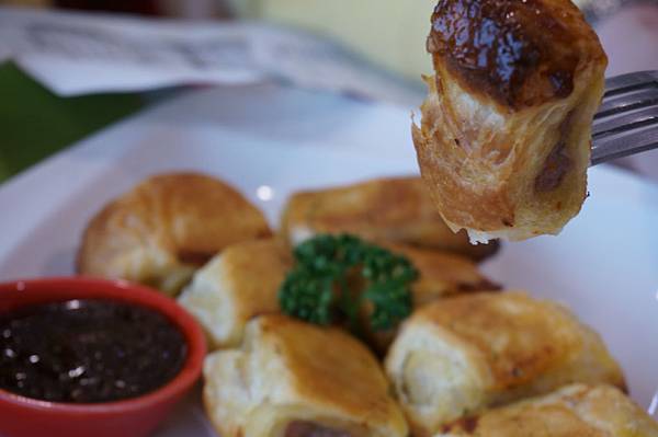 【香酥香腸捲】據說是英國殖名時期留下來的美食,不過店家也經過了改良呦!