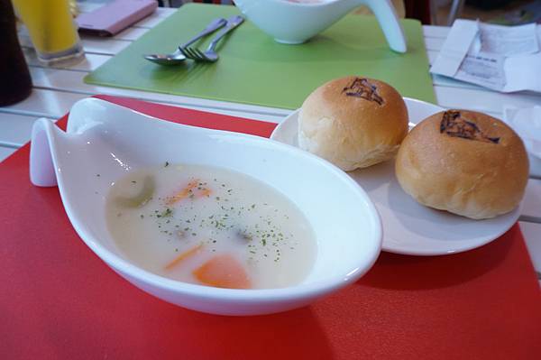 餐包也是師傅自己做的,吃起來比較什麼味道,建議沾著濃湯一起吃,比較好吃!!