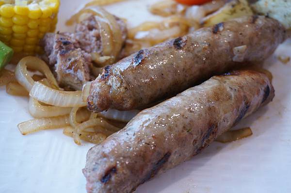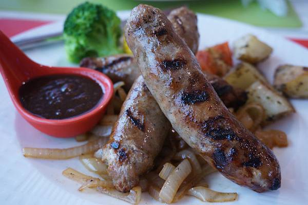 果然和台式香腸就相當不同,手工香腸的口感肉的味道能比較吃的出,搭配的是主廚特製的BBQ醬!!
