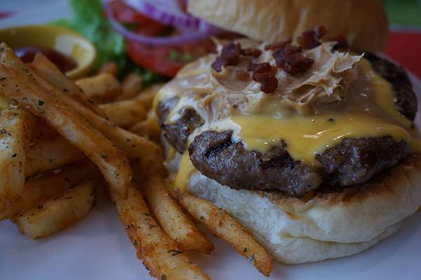 漢堡肉和花生醬,搭配著番茄、洋蔥、和薯條食用,是西方人的標準飲食習慣。