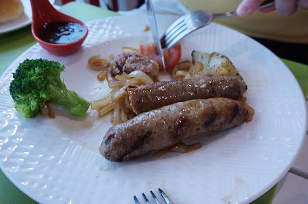 手工腸的扎實度很夠,吃起來很厚實,煎烤的微微燻焦,恰到好處!!