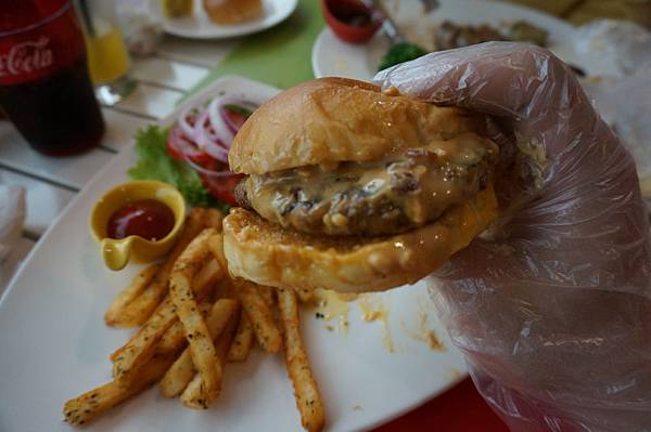 不過,如果要直接拿起來的話,也是OK的啦! 可以看得出來漢堡肉很候唷!!