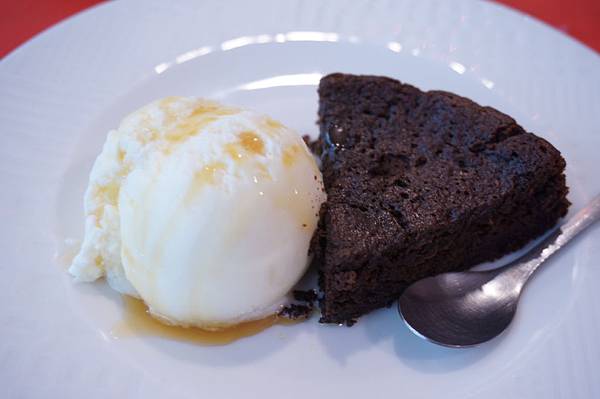 【巧克力布朗尼佐冰淇淋】吃起來溫熱的布朗尼搭上冰淇淋,口感還不錯。