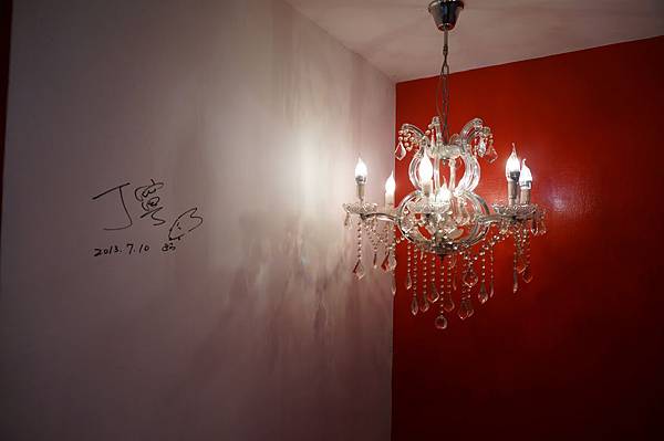 另外還注意到了!!天花上美麗的吊燈旁邊,還有藝人丁寧的簽名。