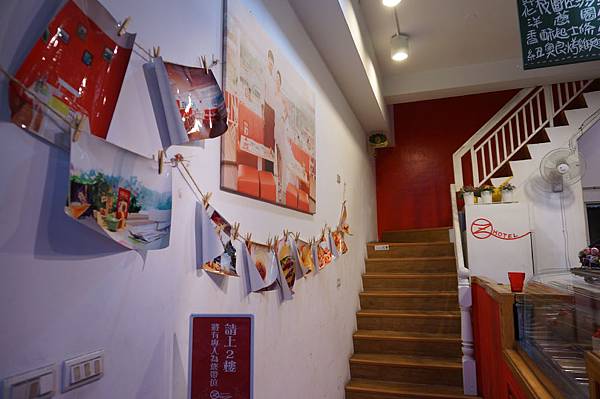 樓梯從一樓走上二樓,階梯很寬敞,小心走,絕對很安全!